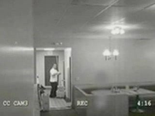 Voici une video rapide capturé par une caméra de sécurité dans un restaurant à Burbank, Californie. Vous pouvez voir un orb flotter autour de la personne et ensuite il se transforme en un brouillard et semble suivre le gardien de nuit.